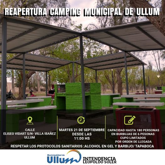 Luego de permanecer dos años cerrado completamente al publico, mañana 21 de septiembre y con motivo de celebrarse el dia del estudiante y de la primavera, el Camping Municipal de Ullum reabre sus puertas.