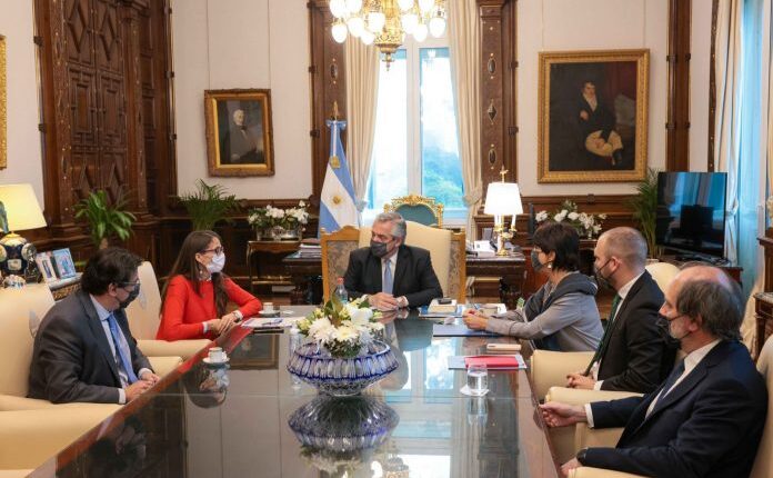 El anuncio se realizó luego de una reunión que mantuvo el presidente Alberto Fernández en su despacho de la Casa Rosada con la ministra de Mujeres, Géneros y Diversidad, Elizabeth Gómez Alcorta; los ministros de Economía, Martín Guzmán y de Trabajo, Claudio Moroni; el presidente del Banco Nación, Eduardo Hecker, y la titular de AFIP, Mercedes Marcó del Pont.