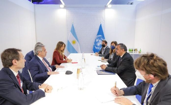 Más temprano, Fernández se había reunido con el director General de la Organización Mundial de la Salud (OMS), Tedros Adhanom Ghebreyesus, quien felicitó a la Argentina por el manejo de la pandemia de Covid-19, por los niveles de alcance del plan de inmunización impulsado por el Gobierno nacional y por haber obtenido vacunas de diversos laboratorios. Además destacó la situación actual por la baja en los casos y en los fallecimientos que registra el país.