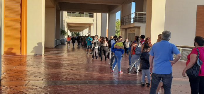 El Ministerio de Desarrollo Humano comenzó este jueves a realizar la entrega del módulo navideño y unas 200 personas llegaron hasta el Centro Cívico para recibir el beneficio.