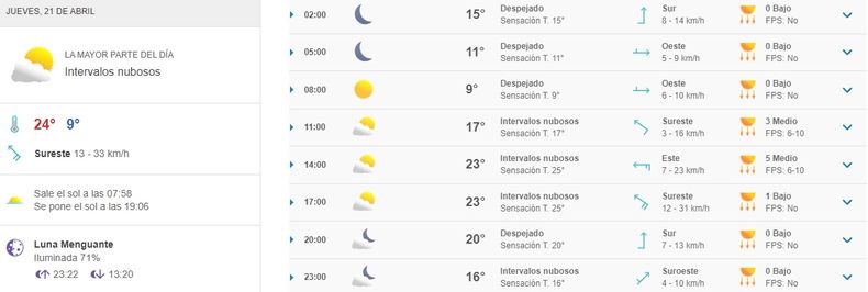 Se viene una jornada con viento moderado del Sureste.