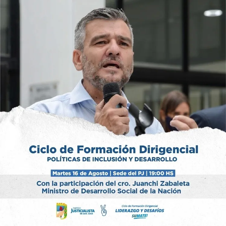 El martes que viene llegará a San Juan el ministro de Desarrollo Social de la Nación, Juan Zabaleta. Dará una charla en el Partido Justicialista local.