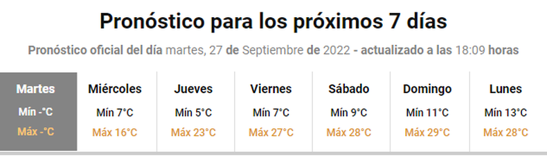 Según los datos del SMN, se espera una mínima de 7° y una máxima de 16°. La caída de agua será fuerte por la madrugada, la mañana e, inclusive, por la tarde. Durante la noche, dejará de llover pero el cielo permanecerá nublado. La lluvia se mantendrá, al menos, hasta el jueves.