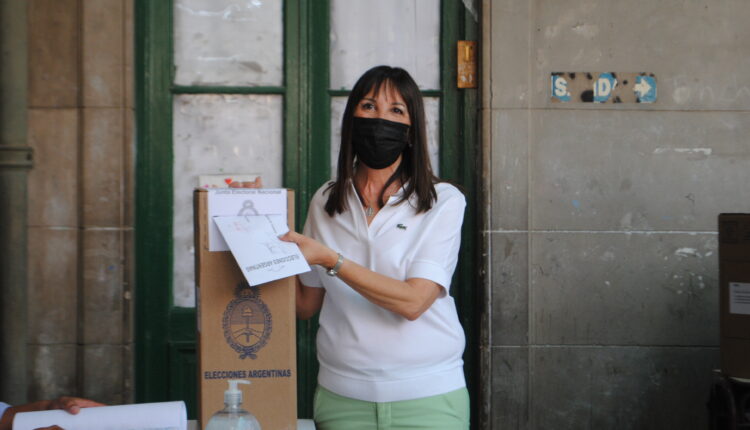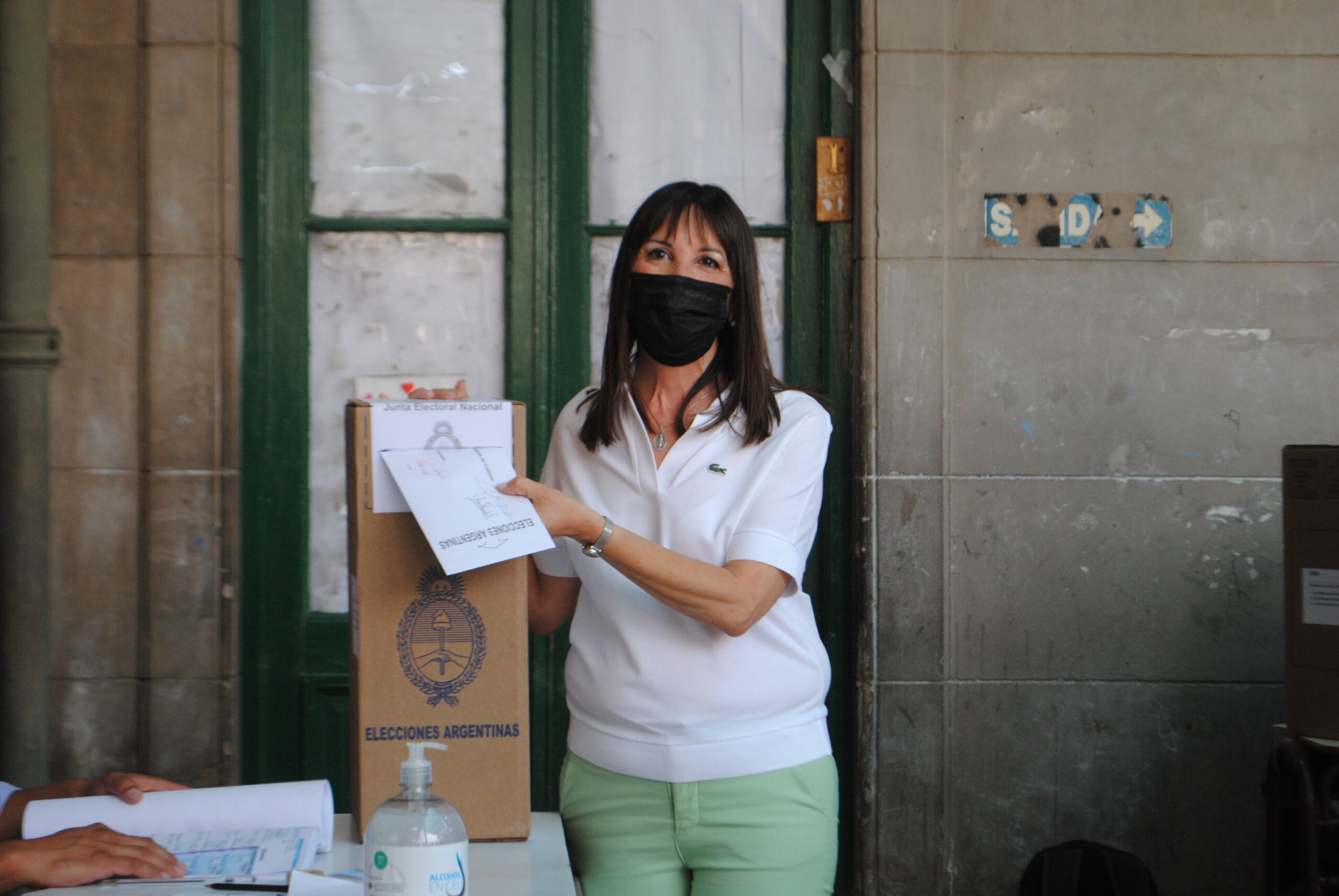 Con la presencia de su familia y dirigentes, la candidata de Juntos por el Cambio llegó a la escuela Normal Sarmiento a emitir su voto. Pidió a la población que "fiscalicen todo".