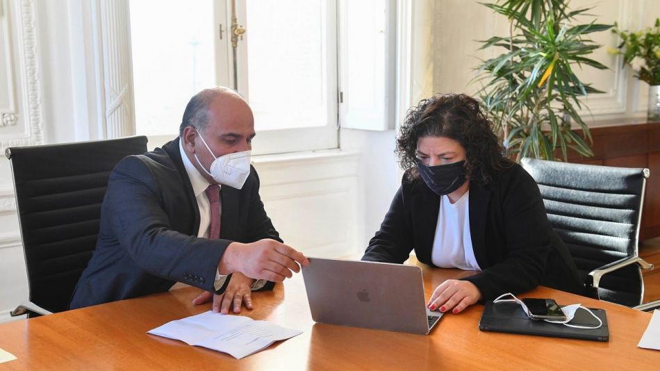 El jefe de Gabinete, Juan Manzur, y la ministra de Salud, Carla Vizzotti, dieron una conferencia de prensa en Casa Rosada, para anunciar las nuevas flexibilizaciones a las restricciones que regían hasta este martes por la pandemia de Covid-19, a raíz de la baja de casos y el avance del plan de vacunación.